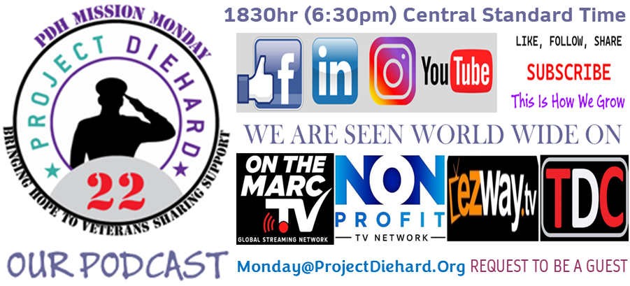 Mission Monday Update podcast by Project Diehard with president/founder Brian Gibson and host Sue Roskopf with cohost Kurt Roskopf