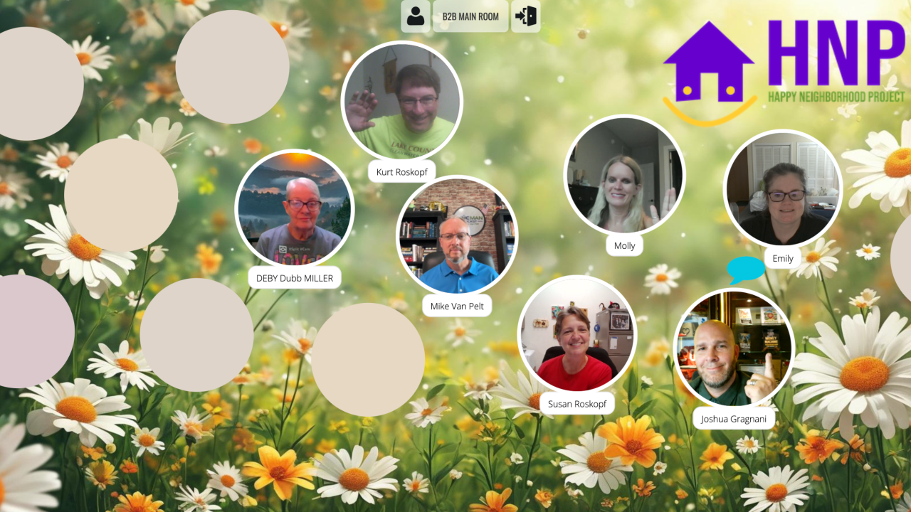 HNP meetings throughout the week https://happyneighborhoodproject.com/networking